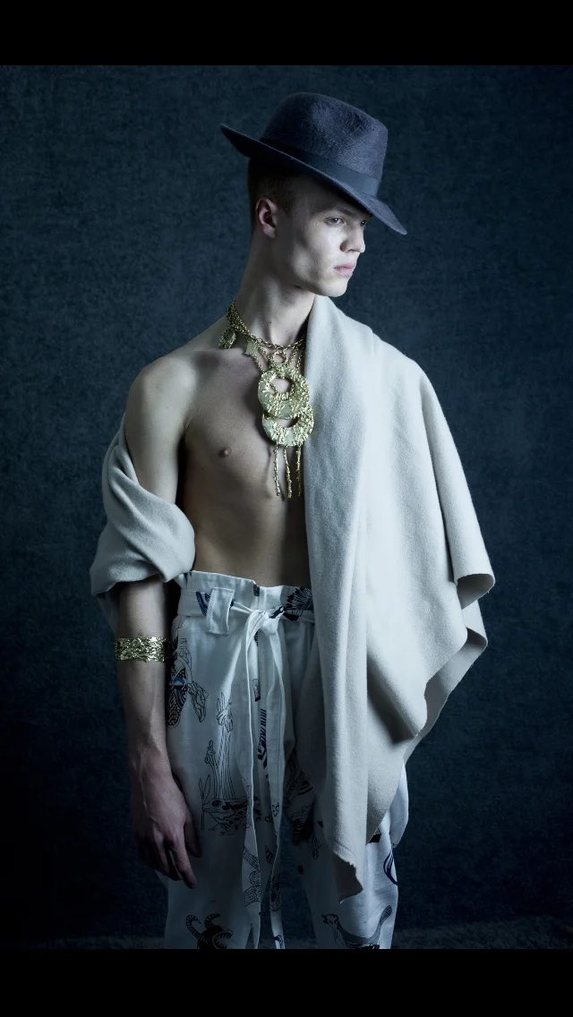 Phoebe Lettice wearing wheat necklace from the SS15 collaboration with Christian Cowan Sanluis for full collection see www.christiancowansanluis.com